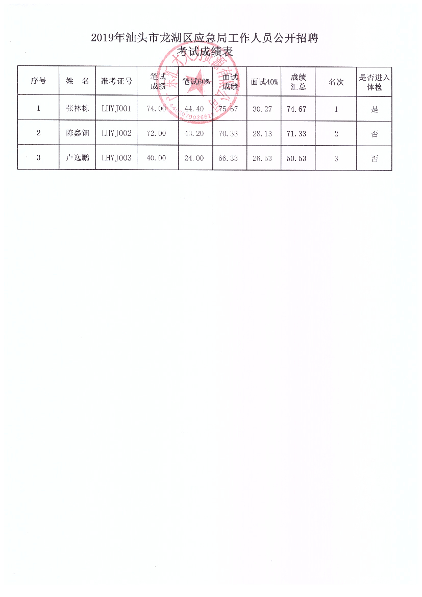 2019汕头市龙湖区应急管理局拟聘人员公示