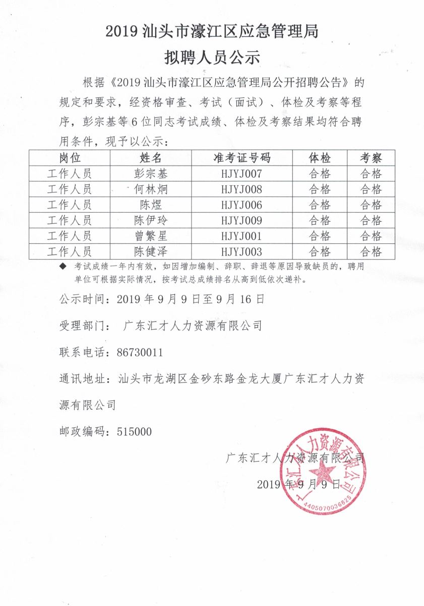 2019年汕头市濠江区应急管理局拟聘人员公示